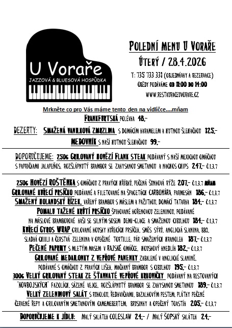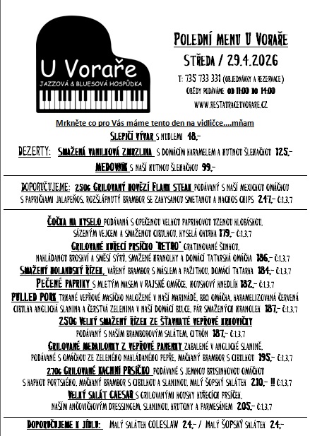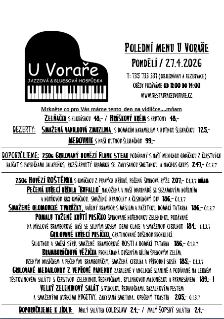 Ochutnat můžete nejen Svijanskou TRUMPETKU 11°, originální pivko, které se vaří pouze pro naší hospůdku, rozmanitou nabídku svijanských piv, ale i široký výběr kvalitních rumů /máme cca 80 druhů / ze všech koutů světa. O Naše pivo se opravdu staráme a důkazem je každý rok NOVÝ certifikát kvality Našeho piva. Nabízíme i leccos k zakousnutí a ve svém okolí jsme známi svou kvalitní a poctivou kuchyní. Vaříme polední menu, připravujeme každý týden NOVÉ „Speciální týdenní menu“ a máme samozřejmě i stálý jídelní lístek. Koncem roku 2019 prošla naše kuchyně náročnou rekonstrukcí a zakoupili jsme nové technologie k přípravě jídel metodou sous-vide. V roce 2024 oslavíme „DVACET LET“ od otevření naší restaurace.